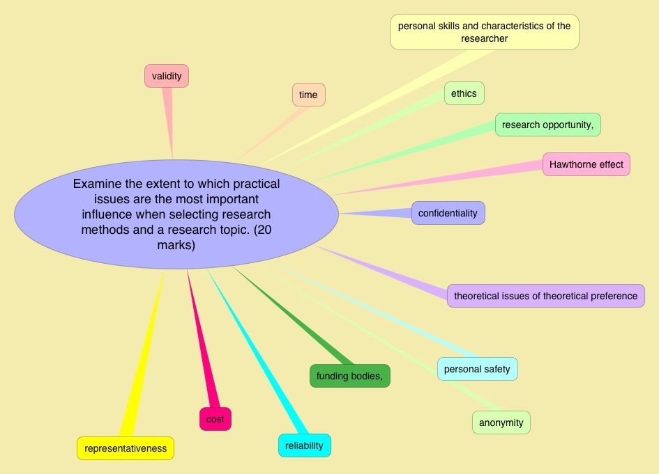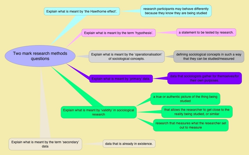 The image below depicts four key areas common to all types of research. Therefore at least remember these four points and you’ll have something to say about any research methods question.