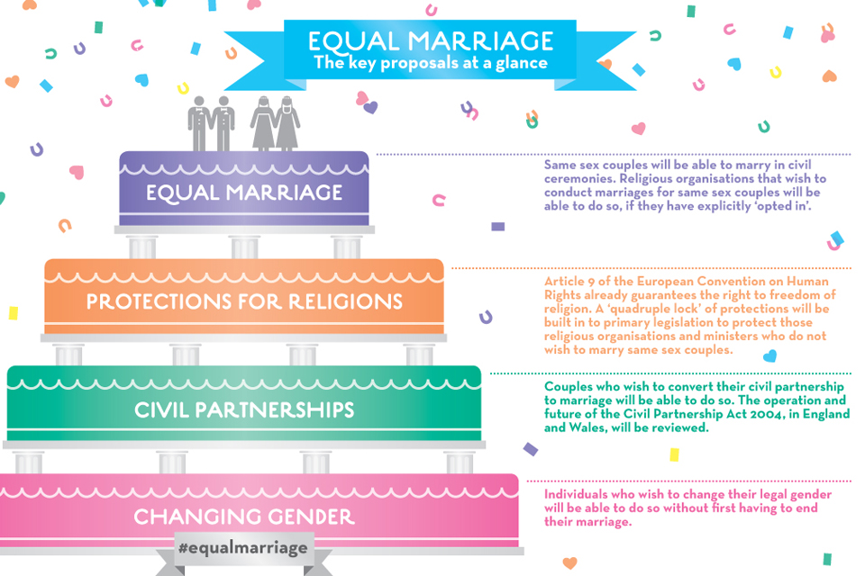 The Marriage (Same Sex Couples) Bill completed its historic journey through Parliament by receiving Royal Assent in December 2013, officially making it law. The Government also announced that the first same sex wedding could take place by as early as summer 2014.